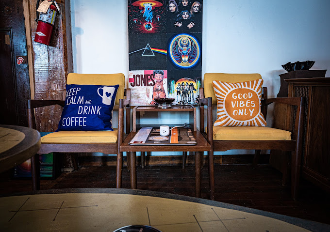 - Enjoy a beverage at TexaKona FM 107 Drinks & Café a rock and roll themed coffee shop.