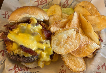 - Try a juicy lucy burger at Lucy’s #7 Burger Bar.